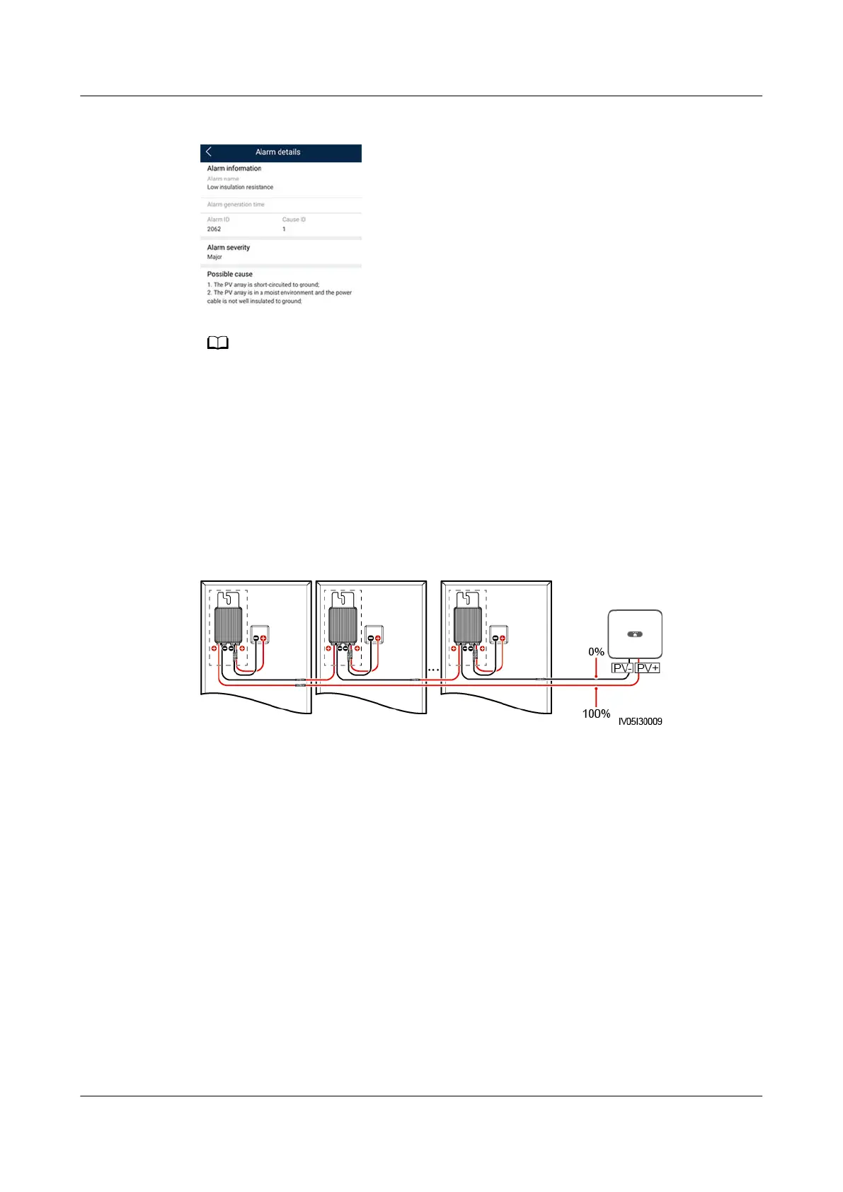 short-circuit position. Other percentages indicate that the fault occurs on a PV module
