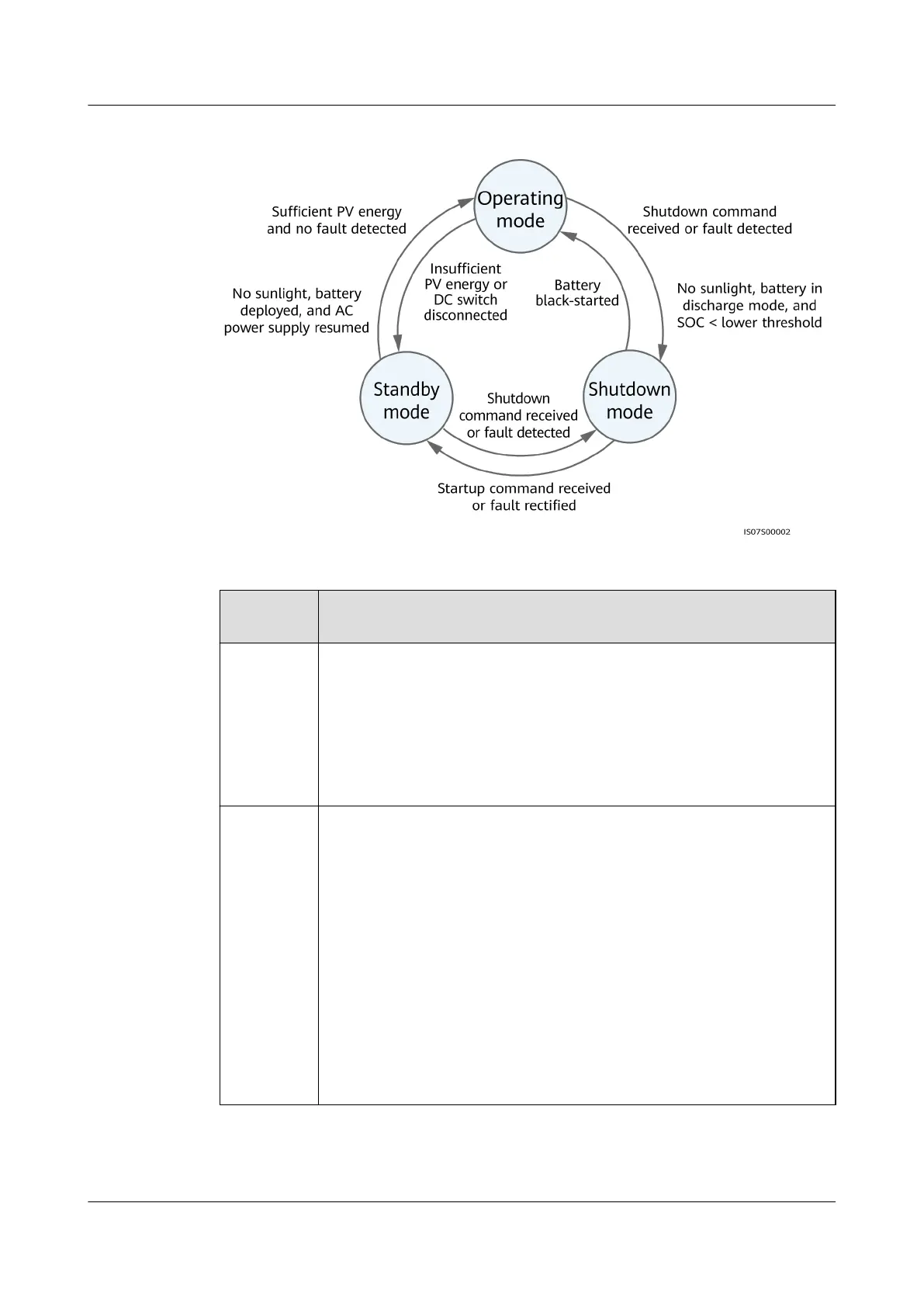 ● If the PV modules receive no sunlight, the inverter enters