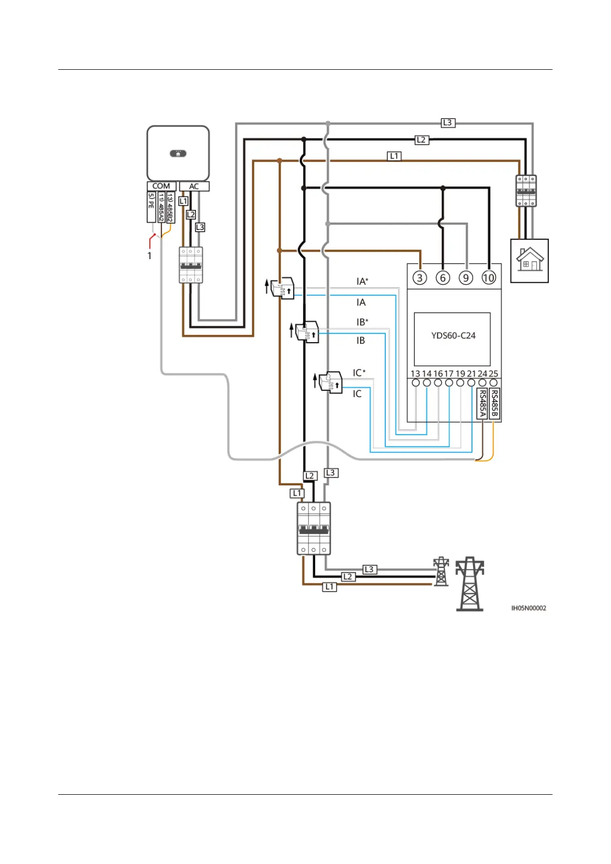 Figure 5-22 YDS60-C24 three-phase, three-wire cable connection (Smart Dongle