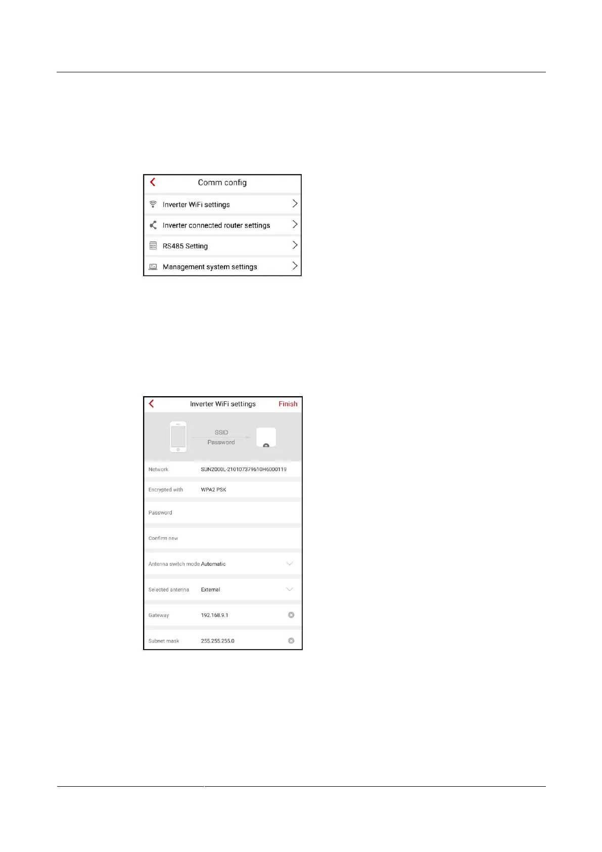 To set the inverter WiFi parameters, choose Comm config > Inverter WiFi settings from the