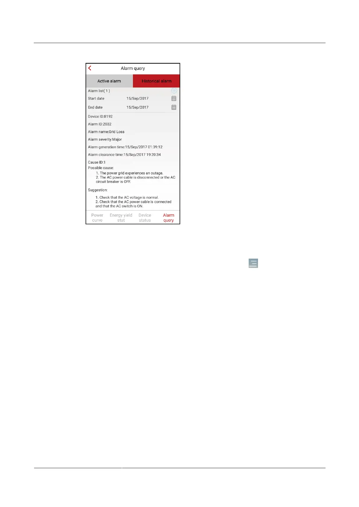 To query the current-day power curve and energy yield, choose > Power curve from the