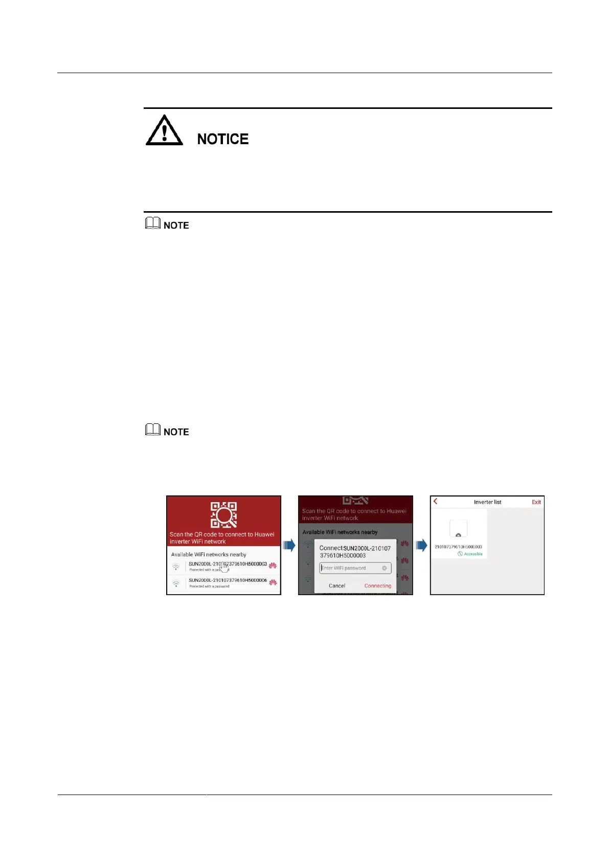 The name of the connected SUN2000L WiFi network is represented by SUN2000L-its serial number