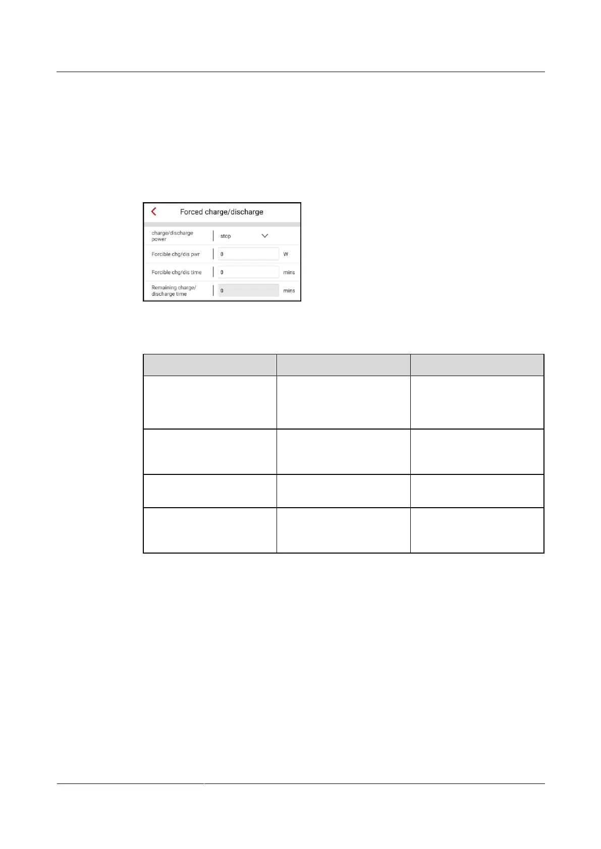 Table 7-5 Description of forced charge/discharge parameters