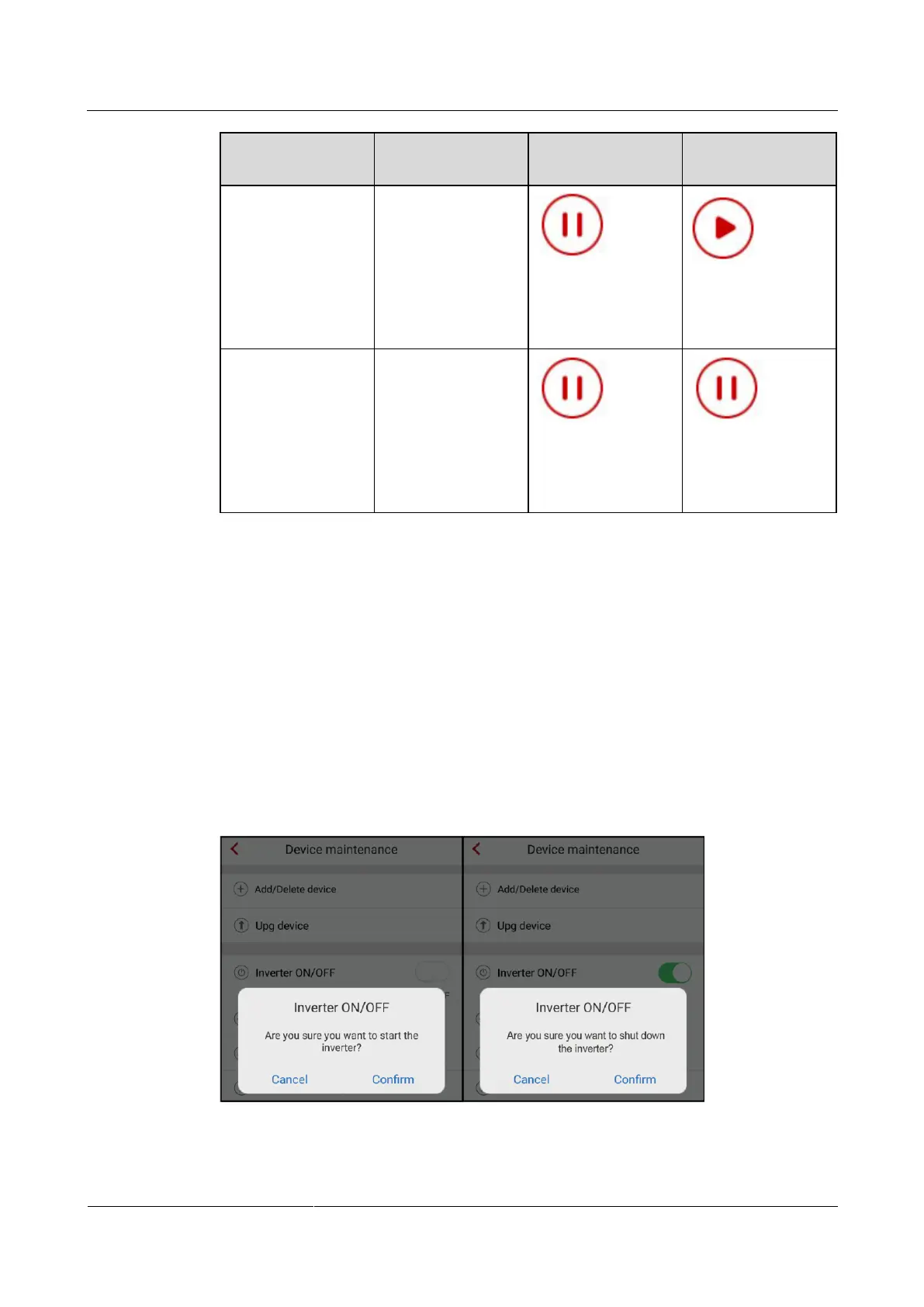 Step 1 On the Operation console screen, choose Device maint > Inverter ON/OFF, and perform