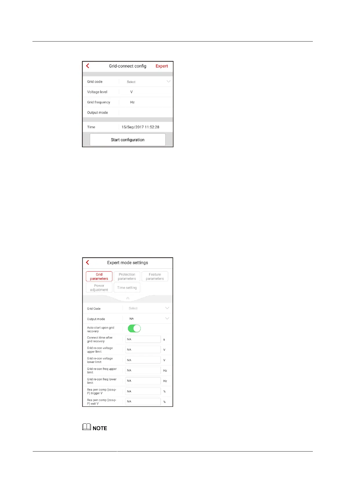 parameters, and time in expert mode, choose Grid-connect config > Expert from the