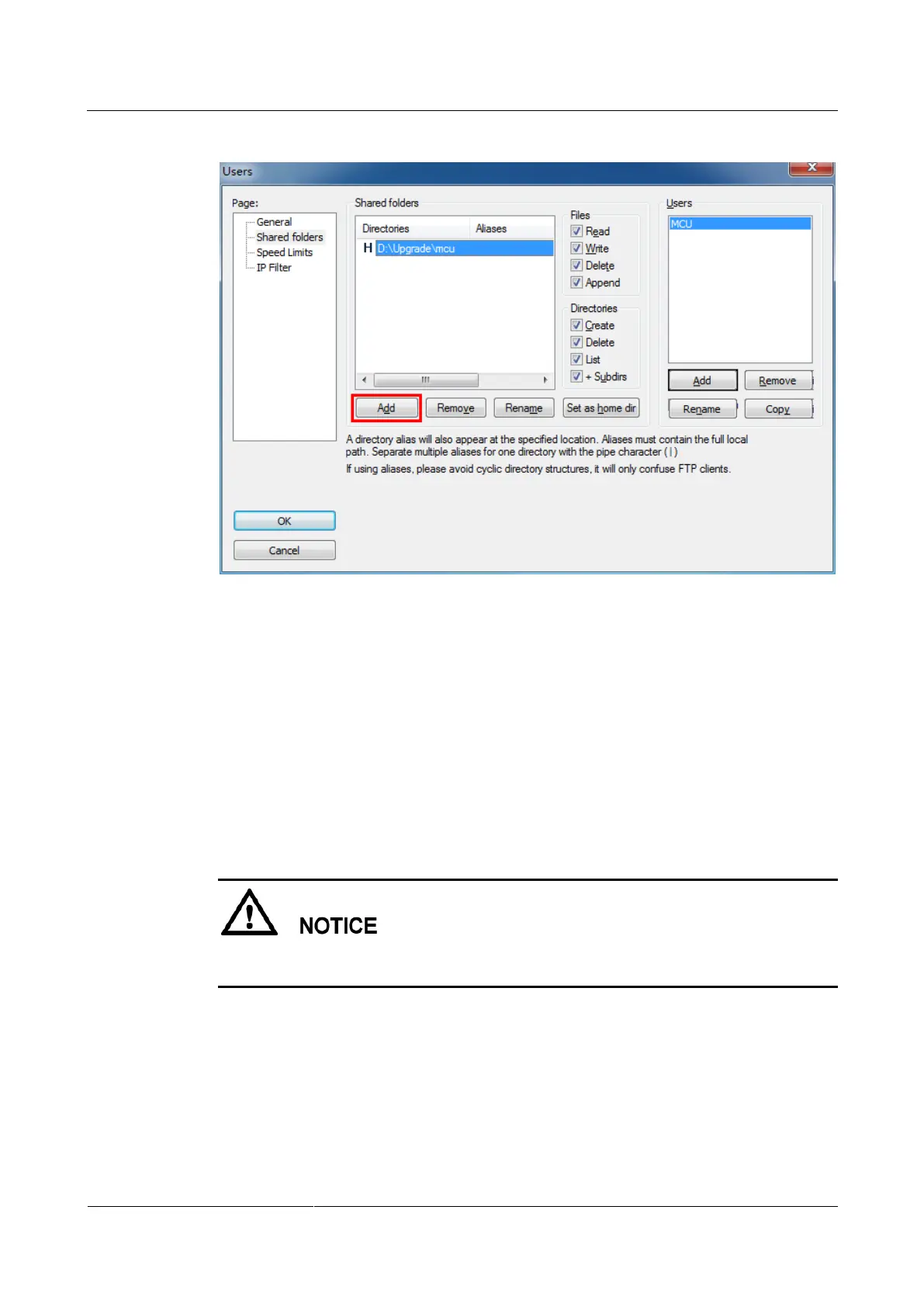 Figure 10-6 Specifying the path for the user root directory of FTPS server
