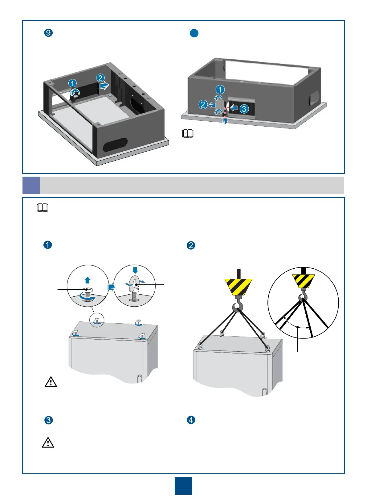 Select a proper method to move the cabinet as required. The crane is here used as an example.