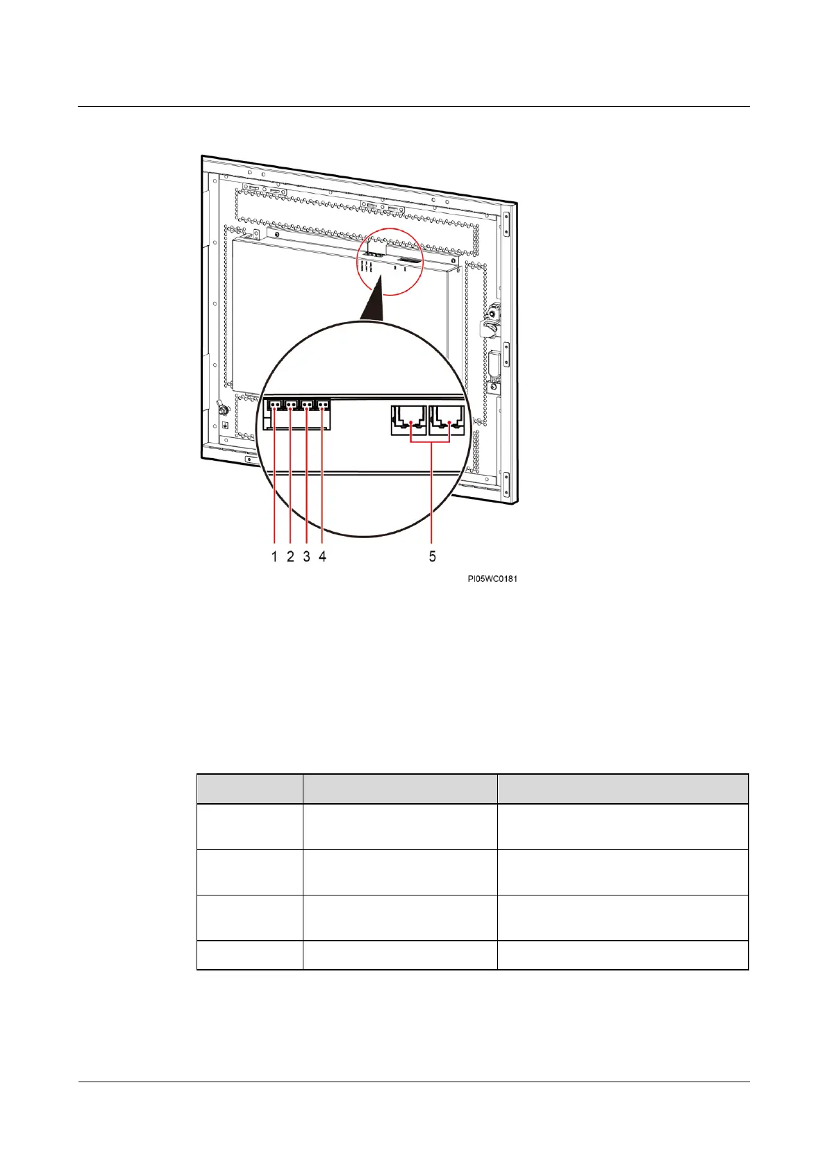 Figure 5-10 Ports on the power distribution monitoring unit (combined cabinet)