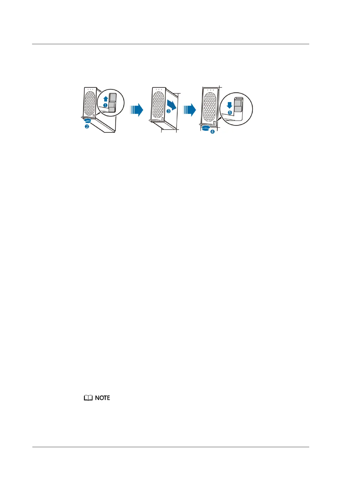 Step 6 Gently slide the new rectifier along the guide rail, and push the locking latch downwards, as