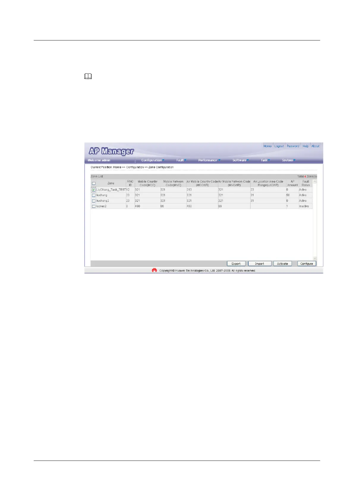 Step 5 Set the parameters based on network planning, and then click Activate to activate the zone, as
