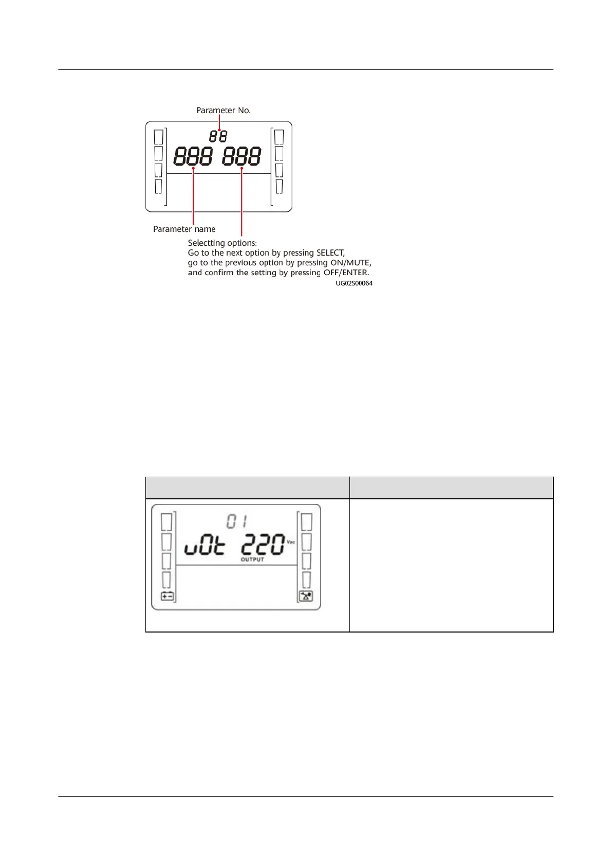 for 5s to enter UPS setting mode. In this case, all parameters can be set.