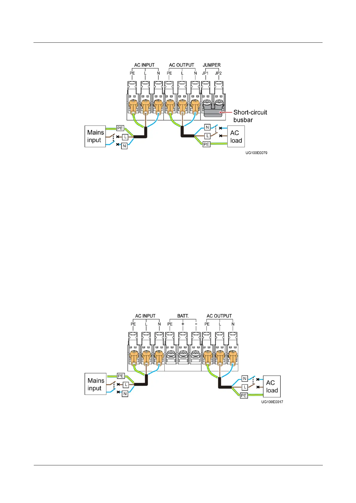 Step 3 Install AC output power cables, and AC input power cables in sequence, as shown in Figure
