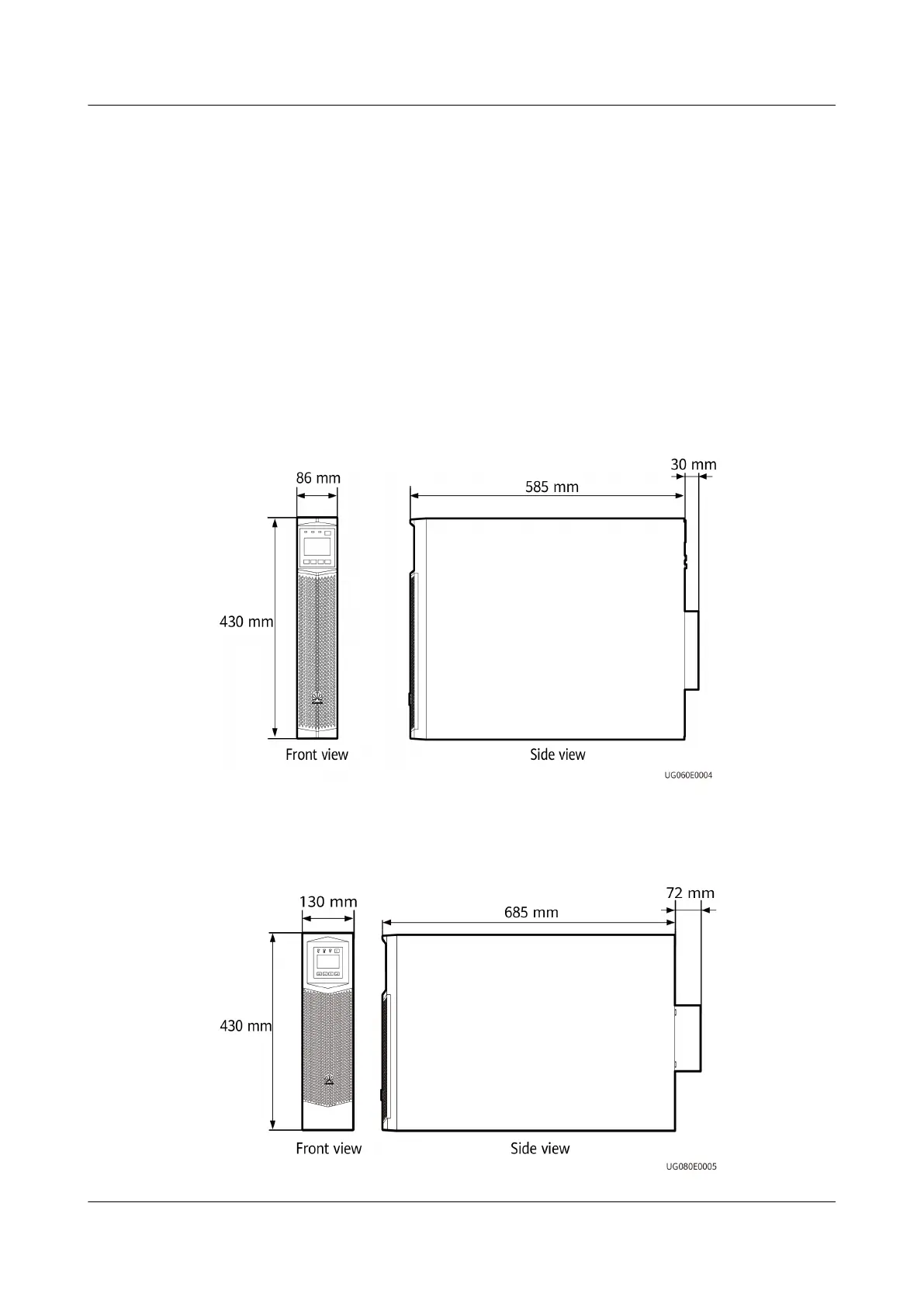 Figure 3-1 UPS2000-G-6 kVA/10 kVA installation dimensions