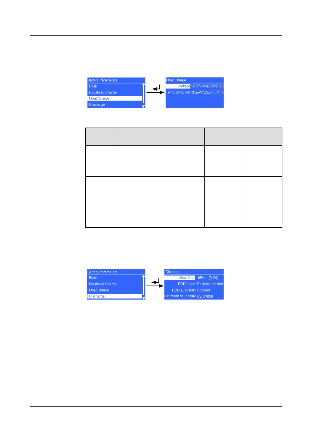 Table 5-29 Float Charge screen
