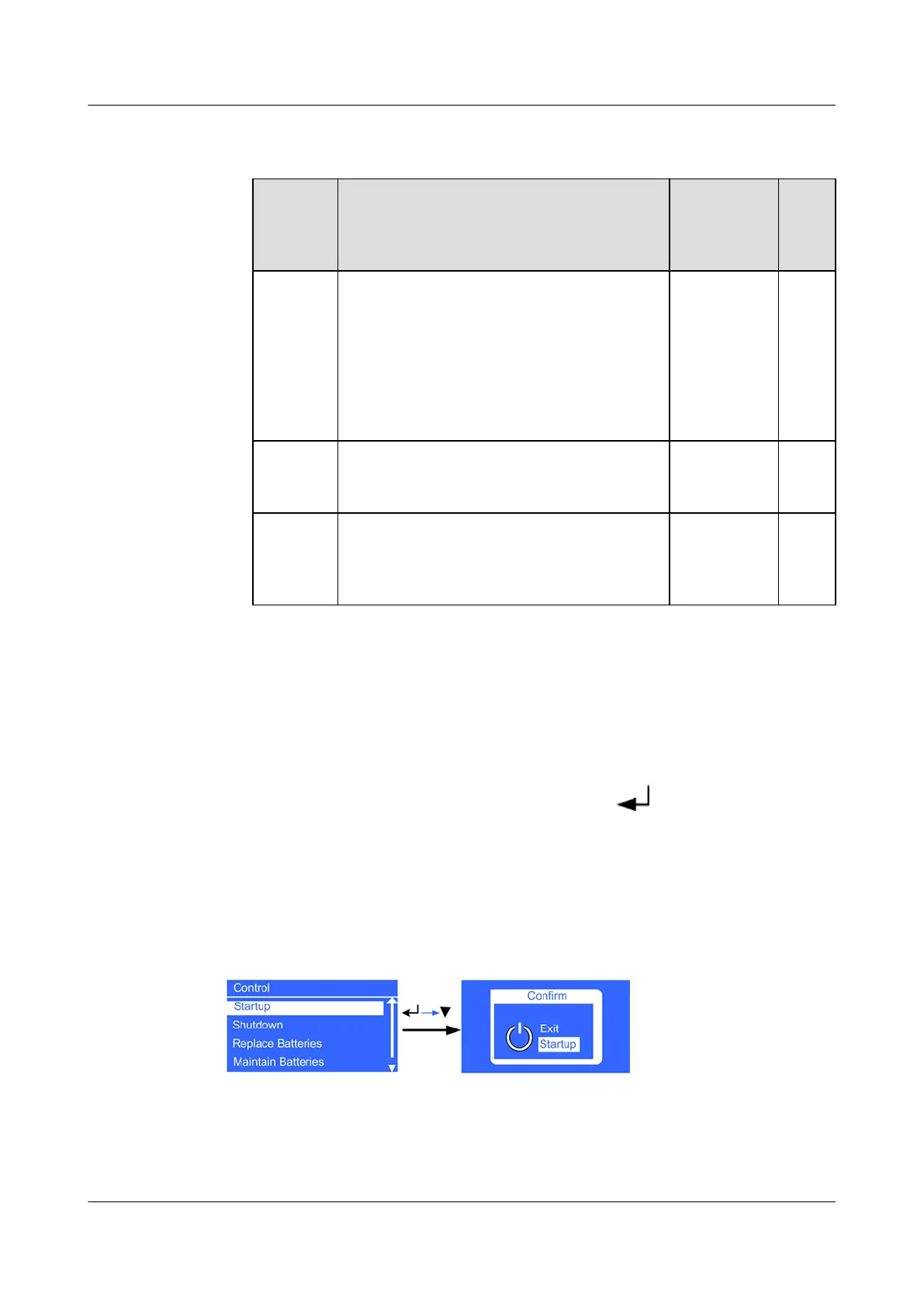 The Startup menu allows you to start the inverter.