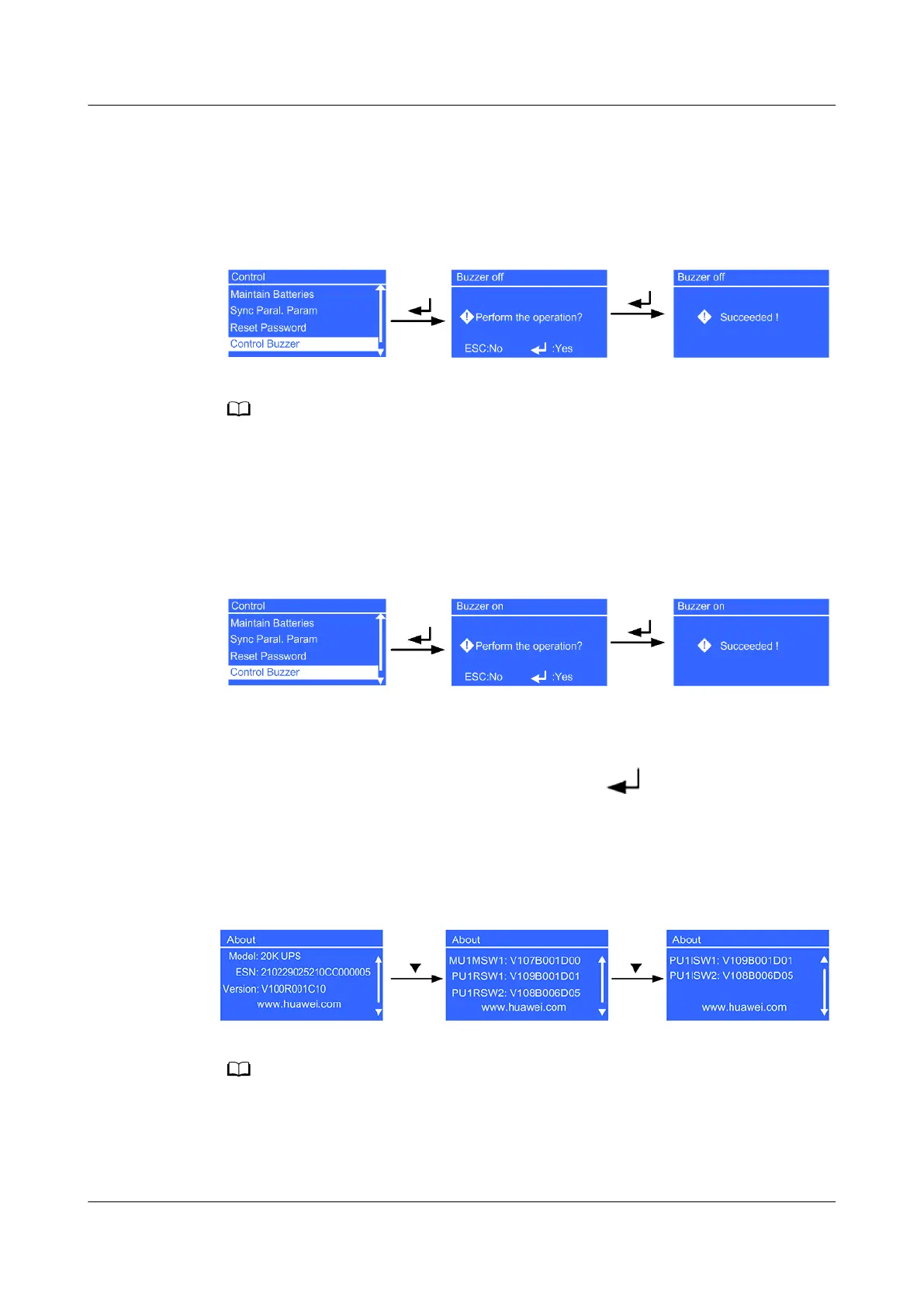 You can view the UPS model, equipment serial number (ESN), and version