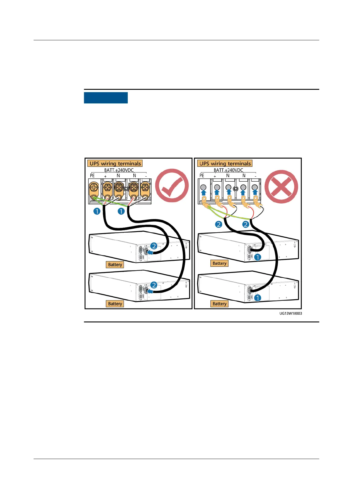 terminals on the UPS side. 2. Install cables at the battery terminals on the
