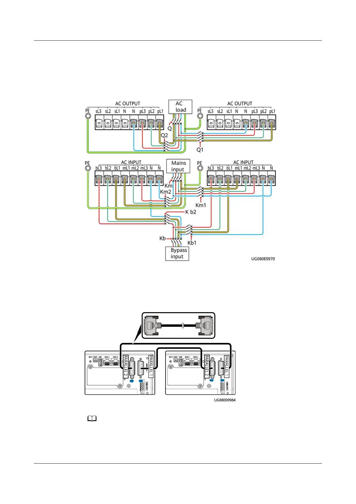 Figure 6-15 Parallel system wiring diagram of 15 kVA/20 kVA UPSs (three-phase