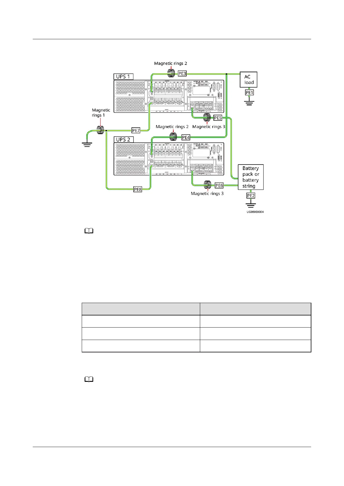 Figure 2-9 Installing a magnetic ring (numbered 1) on the general PE cable