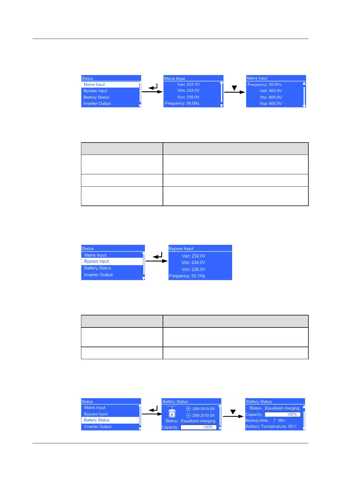 Van/Vbn/Vcn Bypass input phase voltage (Voltage is displayed