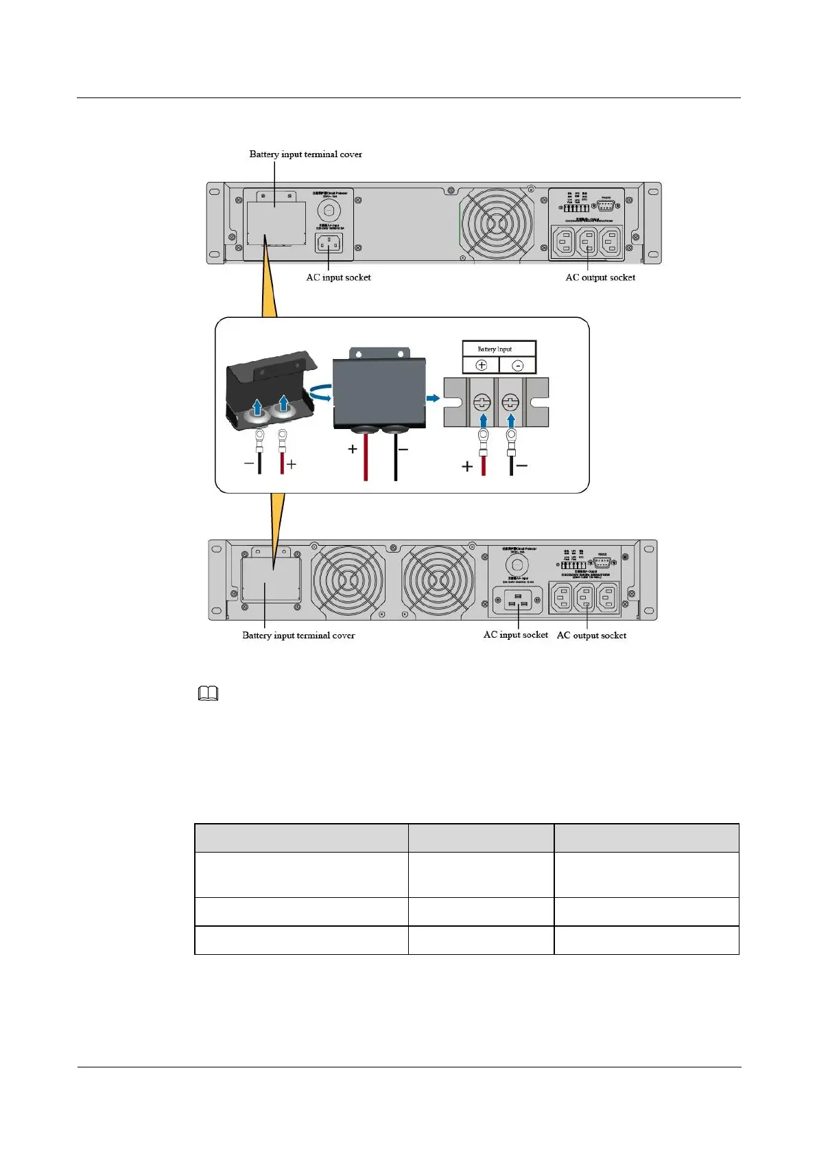 Table 3-1 describes the recommended cable diameters and screw models for the UPS.