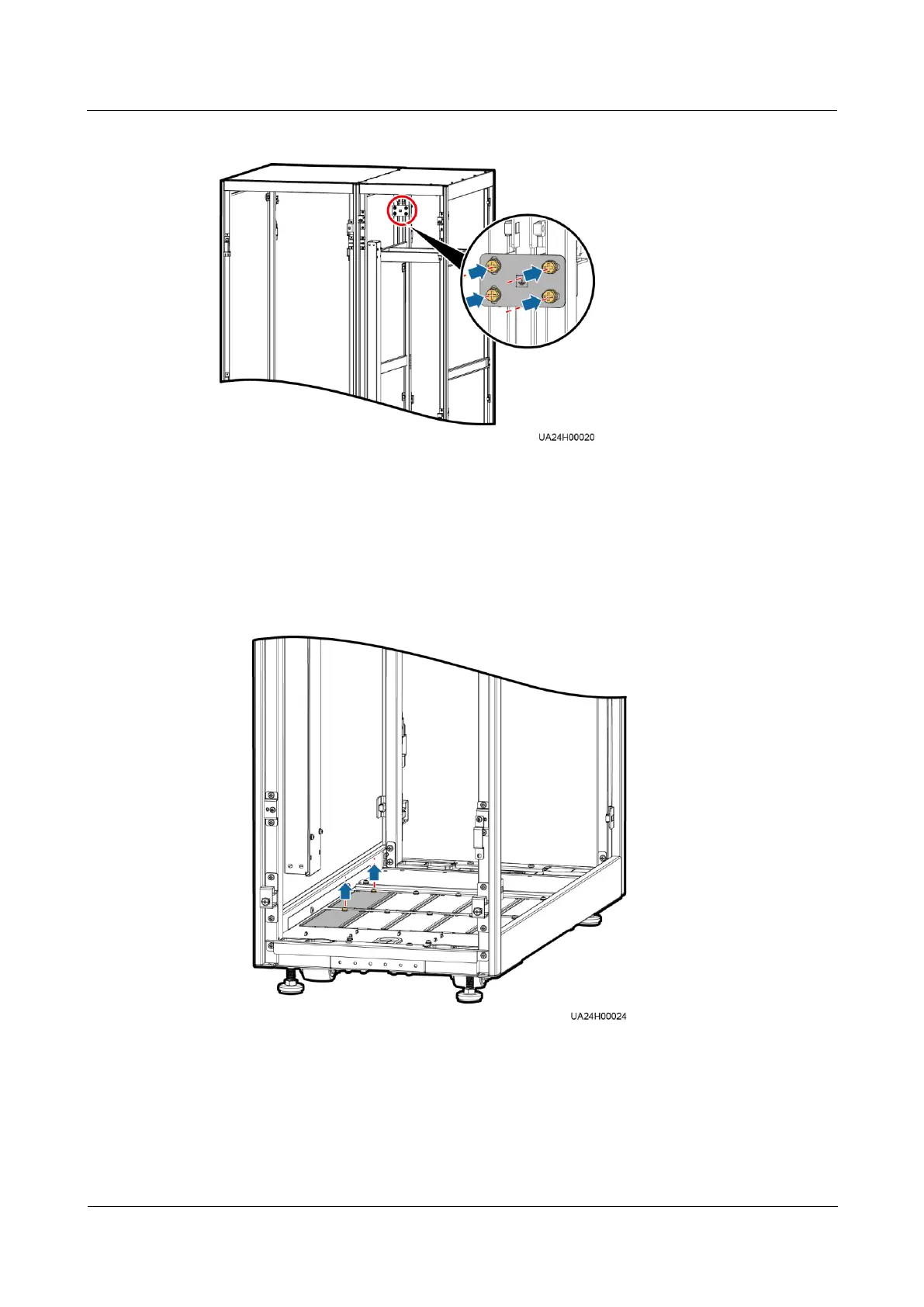 Remove a certain number of small covers from the bottom of the cable entry cabinet