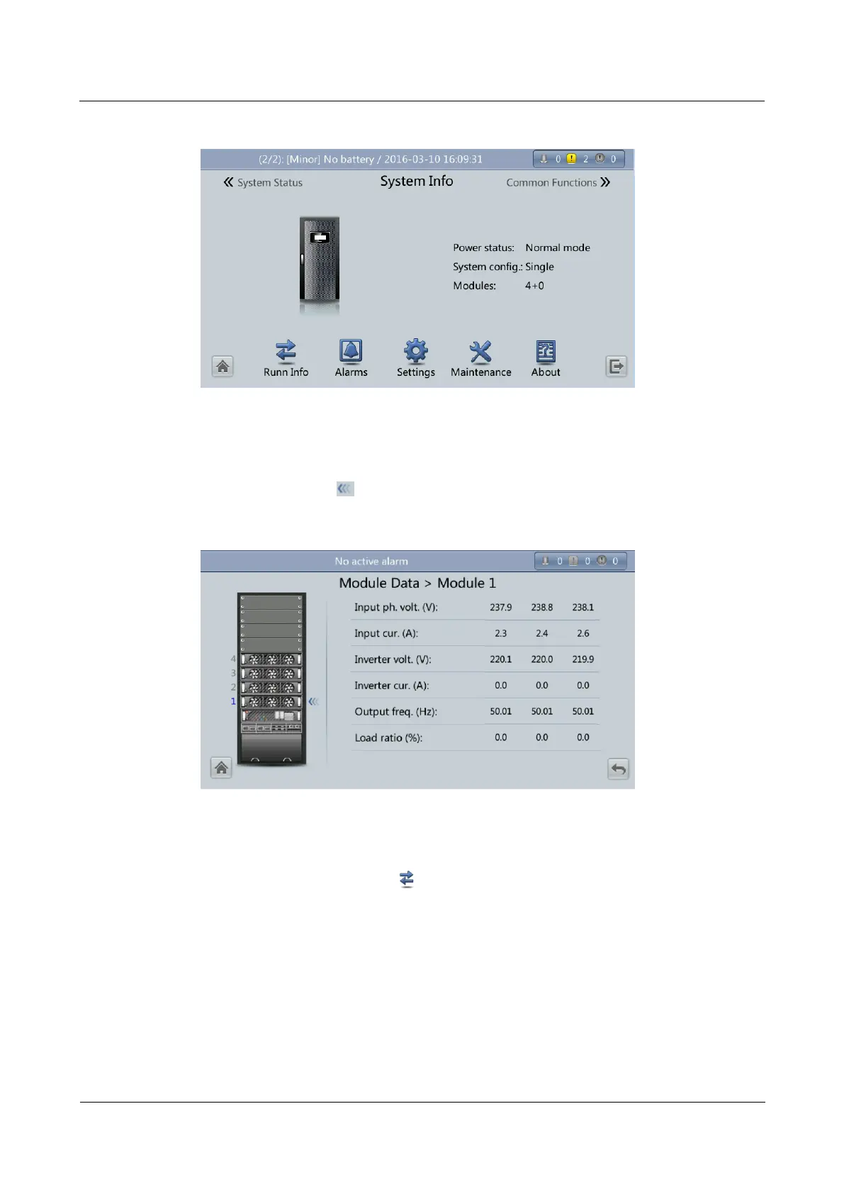 On the System Info, tap the UPS picture. On the Module Data screen, select a module to