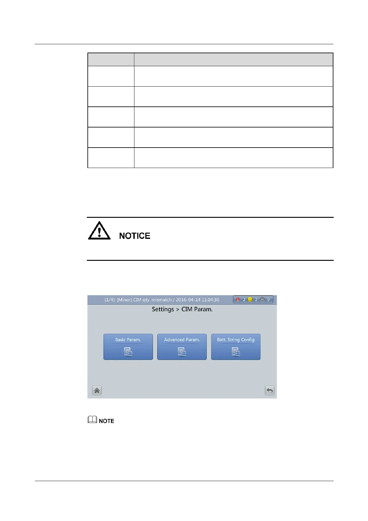 On the System Info > Settings > CIM Param. > Basic Param. screen, if Number of battery strings is
