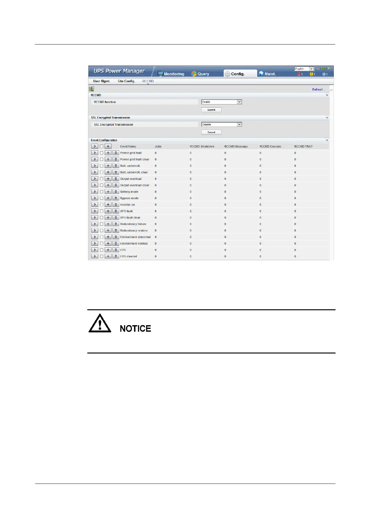 The SSL encrypted transmission set on the page of the UPS5000E monitor display module