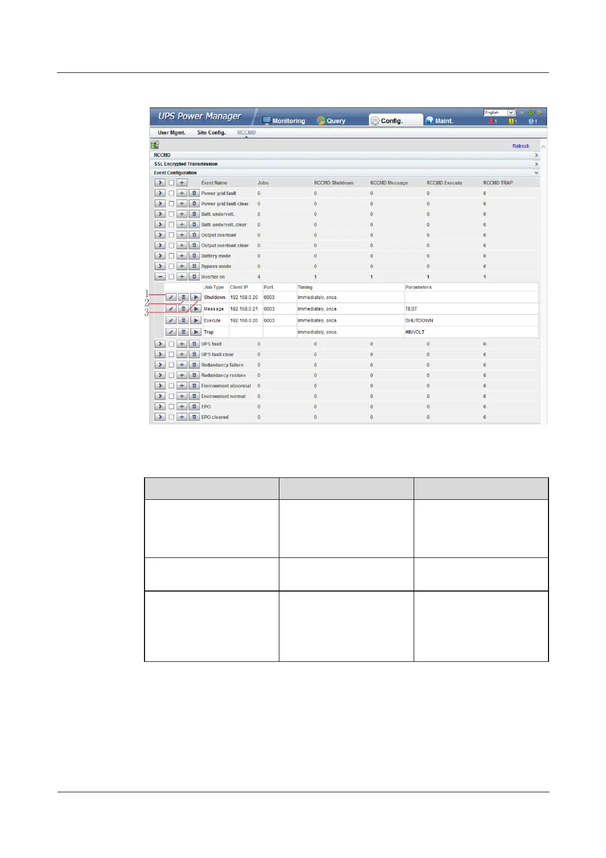 Adding one job for one event: Select one event (for example, Inverter on), click the button