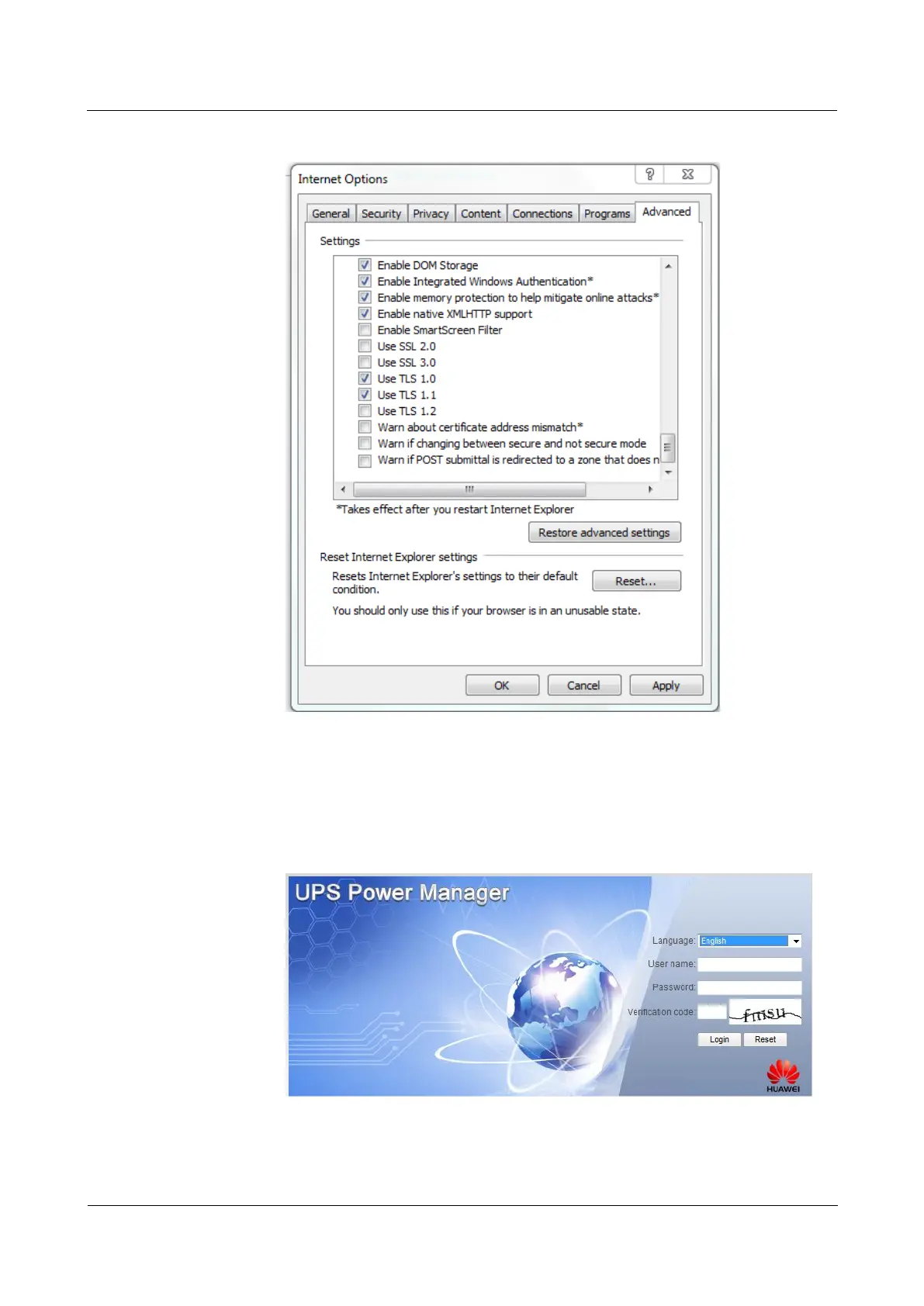 Figure 5-10 Settings in the Internet Options dialog box