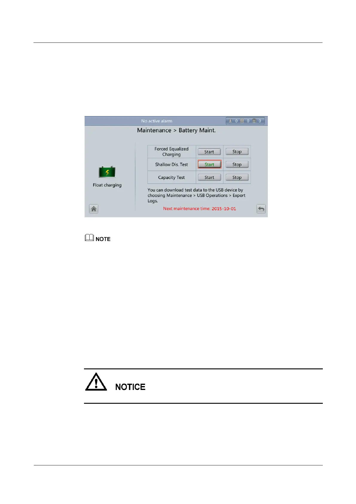 Step 4 Tap Start on the right of Shallow Dis. Test to start a shallow discharge test, as shown in