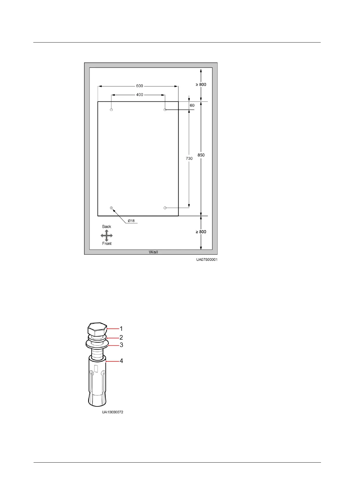 Figure 3-9 UPS5000-E-200K-FM mounting holes positioning (unit: mm)