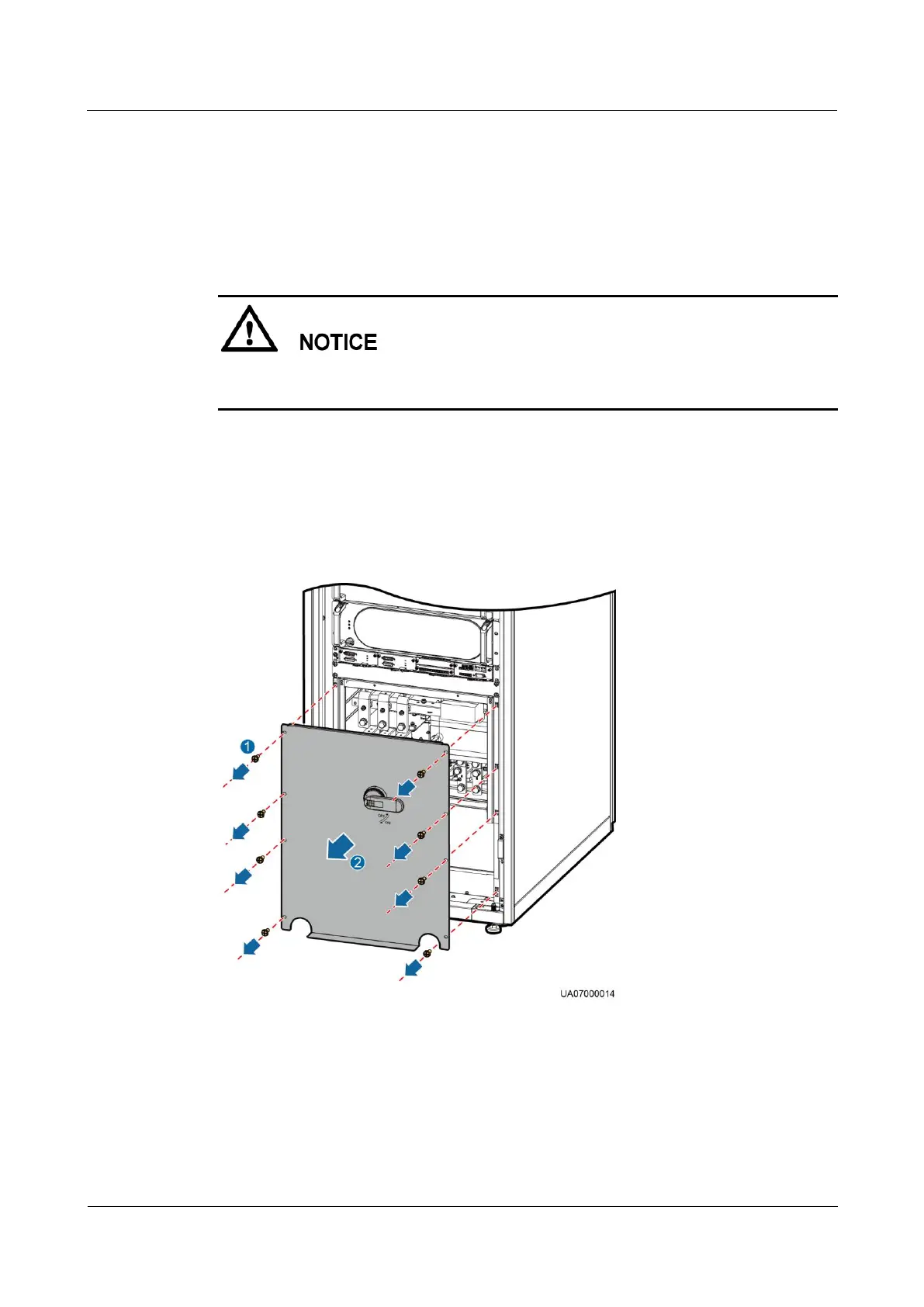 Step 1 Ensure the maintenance bypass switch is OFF. Open the front door, and remove the cover