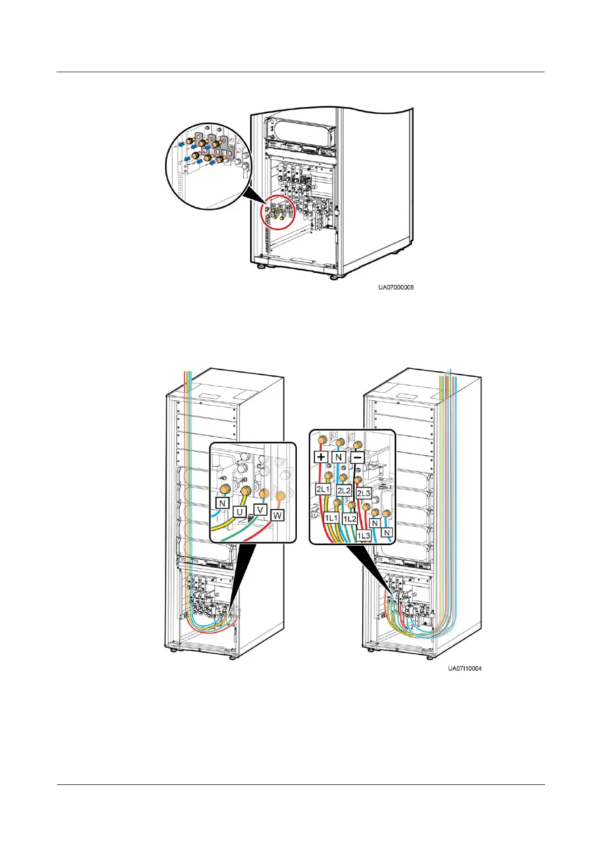 Figure 3-35 shows cables routed from the top by removing small covers, as an example.