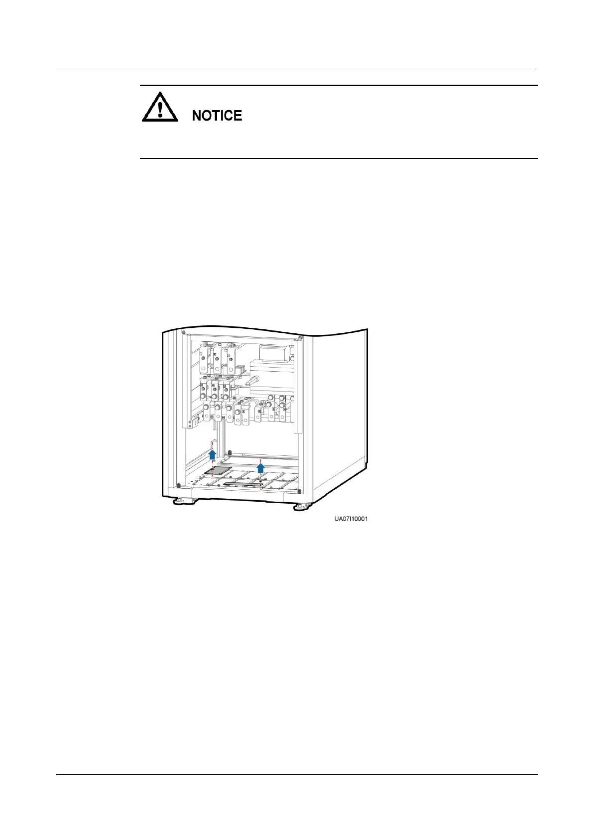 Step 1 Open the front door and remove the cover from the power distribution subrack, as shown in