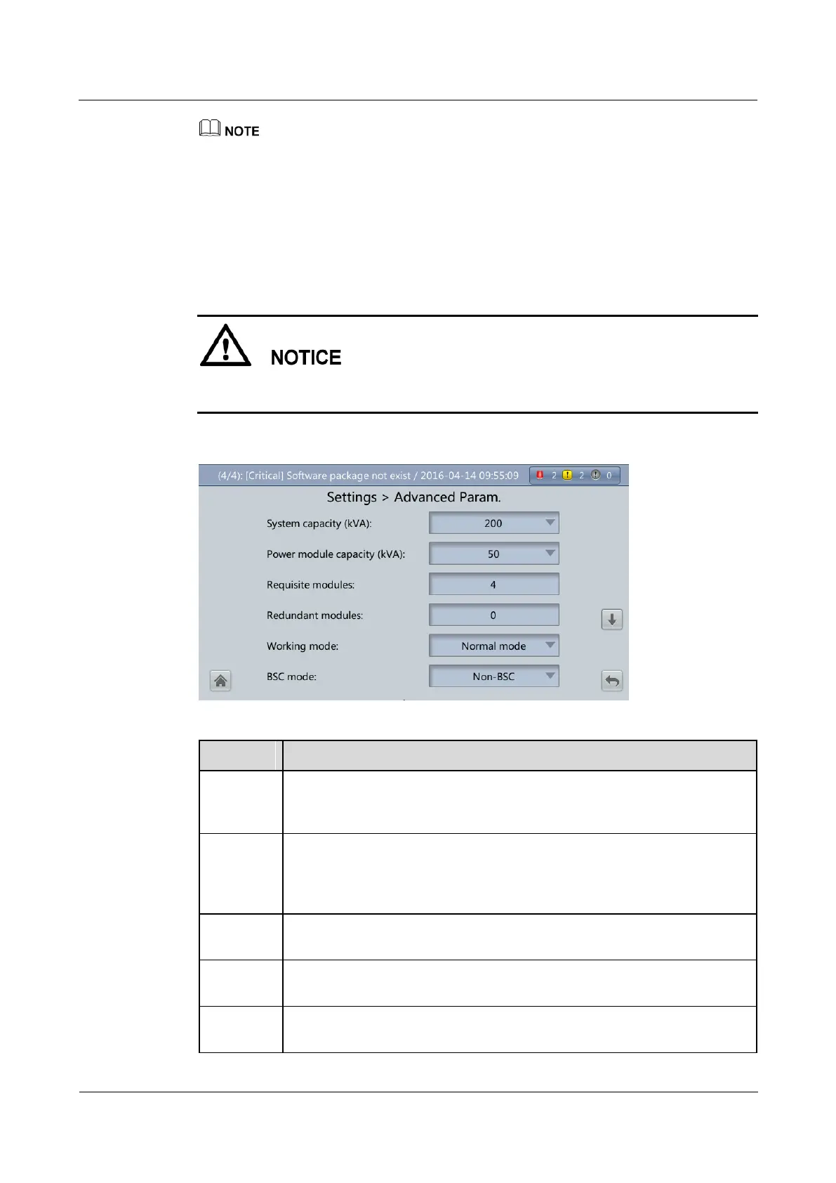 Set System capacity and Power module capacity according to site specifications. Incorrect