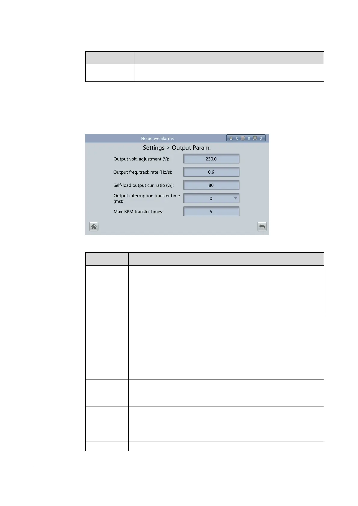 the UPS is in self-load mode. The value can be 20%–100%, and is 80% by
