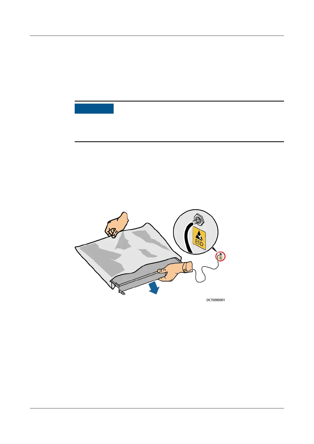 ● Wear ESD gloves or a well-grounded ESD wrist strap when touching the