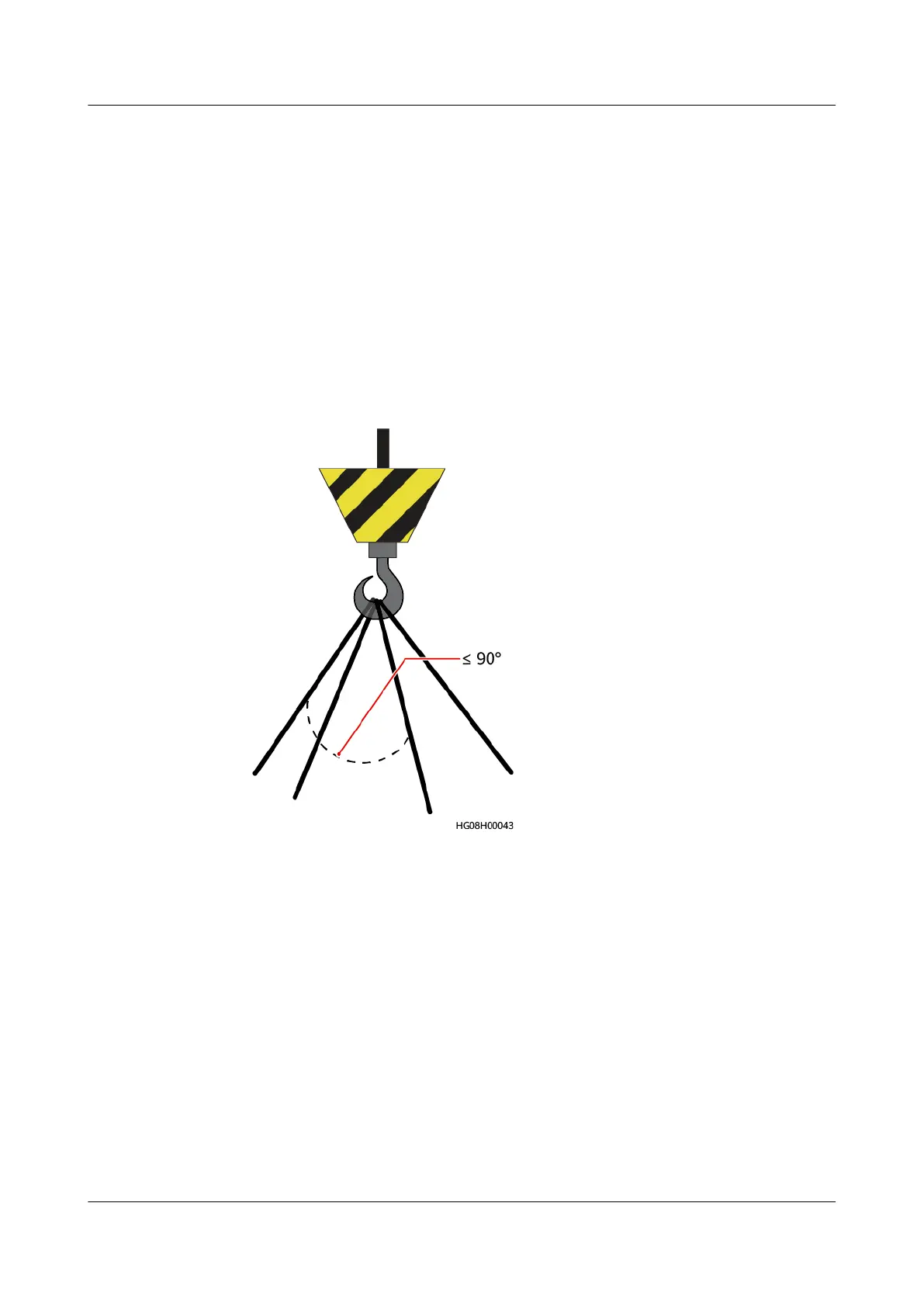 ● Ensure that the angle formed by two hoisting cables is no more than 90