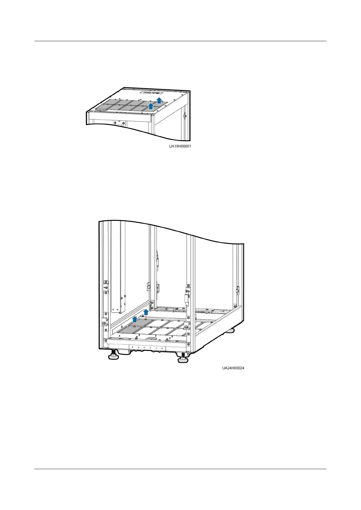 Step 9 Remove covers from the top of the cable entry cabinet based on the site