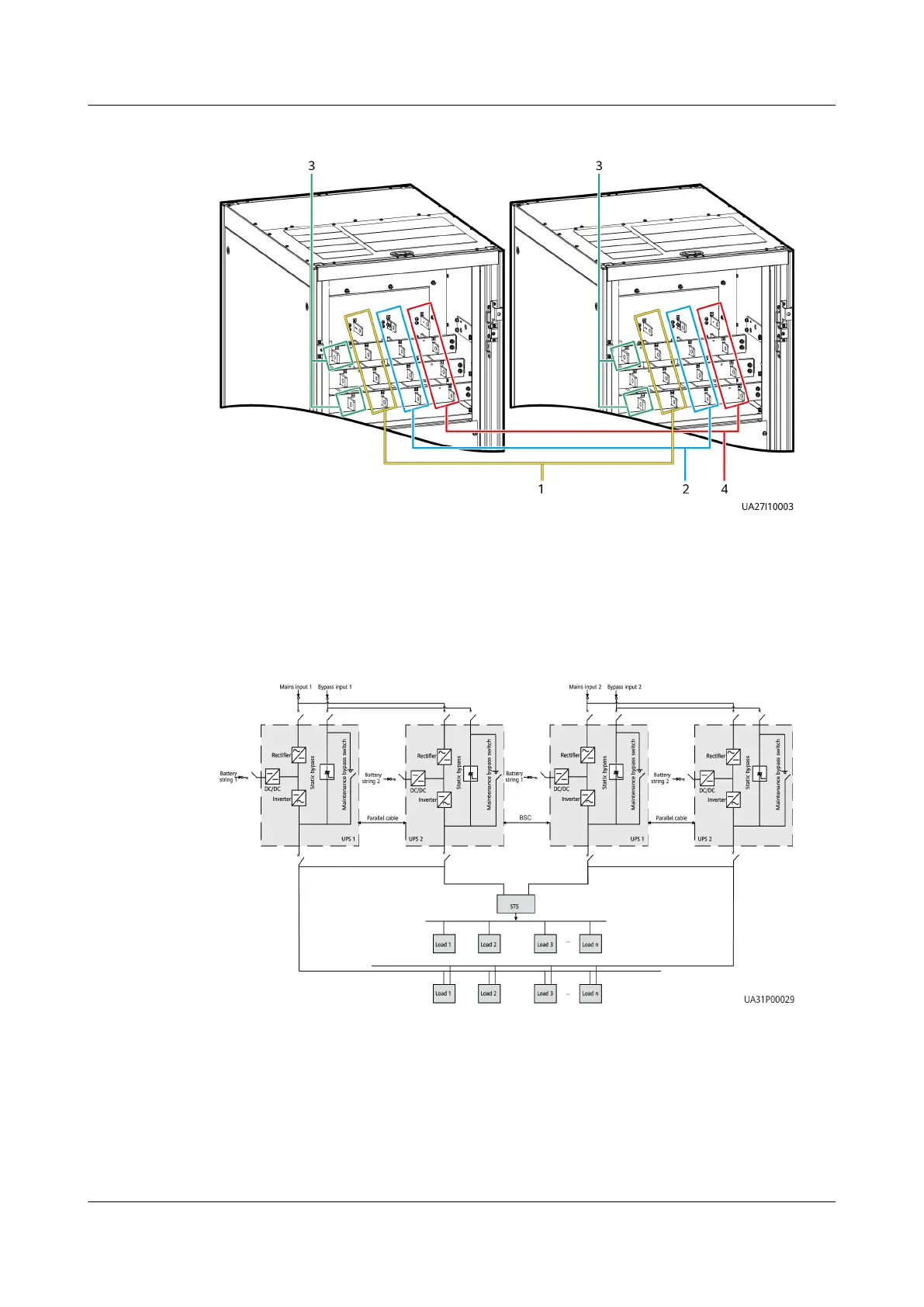 Figure 3-43 Cable connections for a 1+1 parallel system
