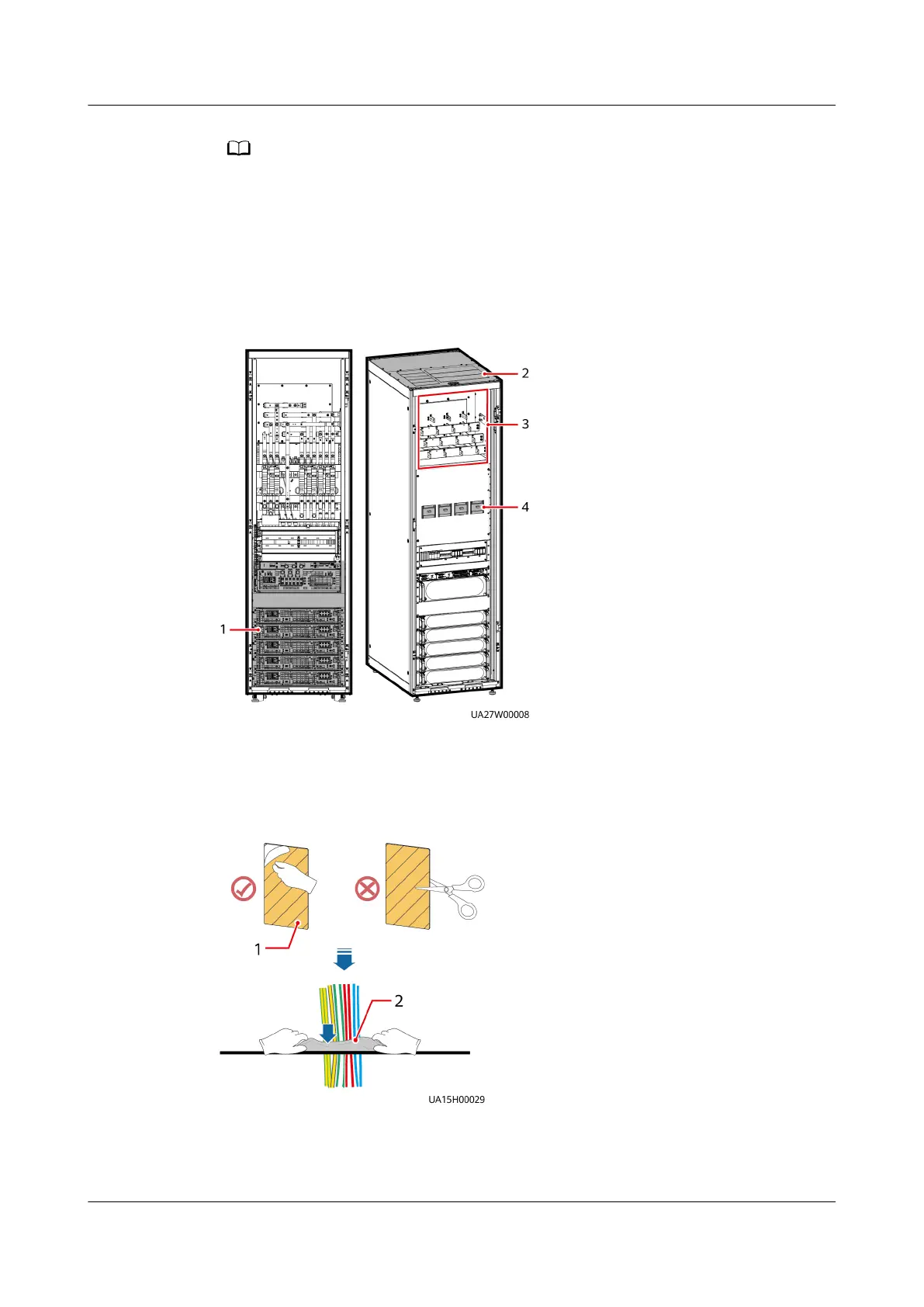 (1) Rear of modules (2) Cabinet top (3) Wiring terminal