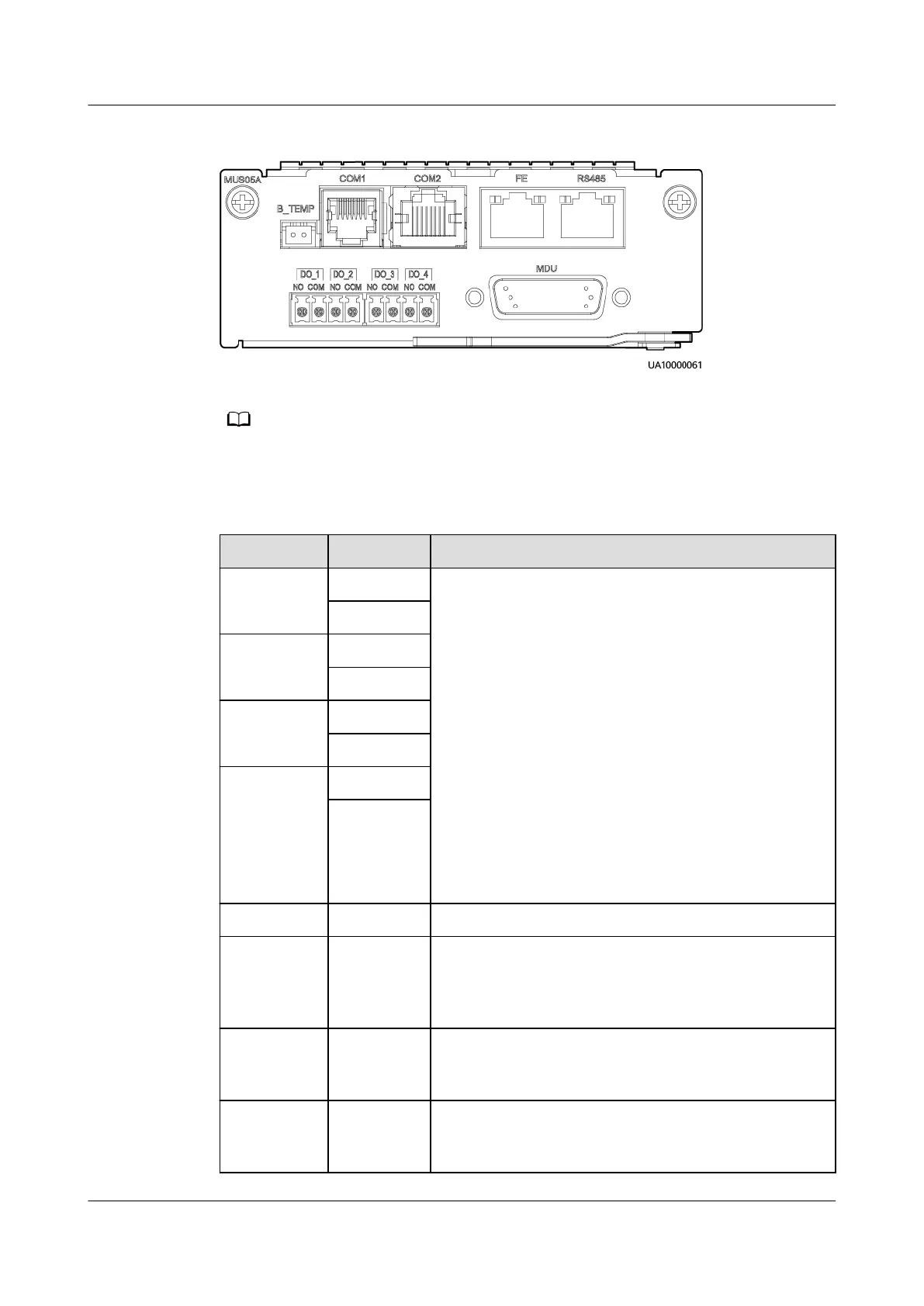 Table 2-7 Ports on the monitoring interface card