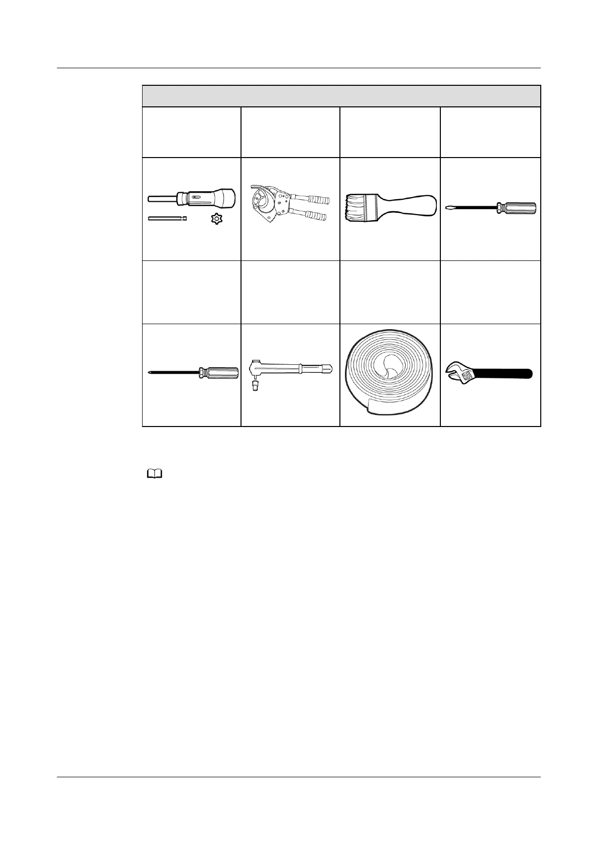 tools required, see the document for each component. Prepare tools based on site requirements.