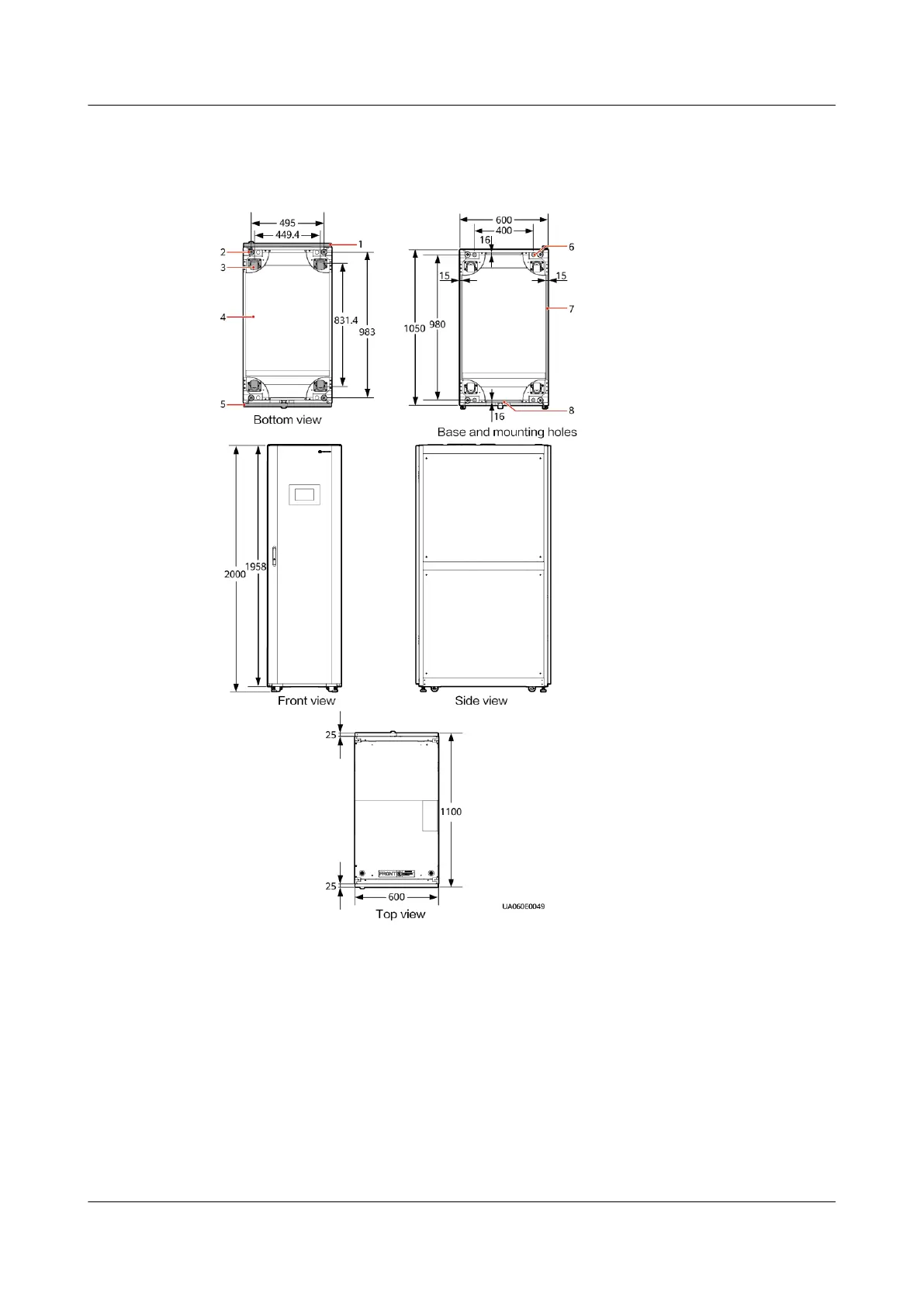 (5) Rear door (6) Base mounting