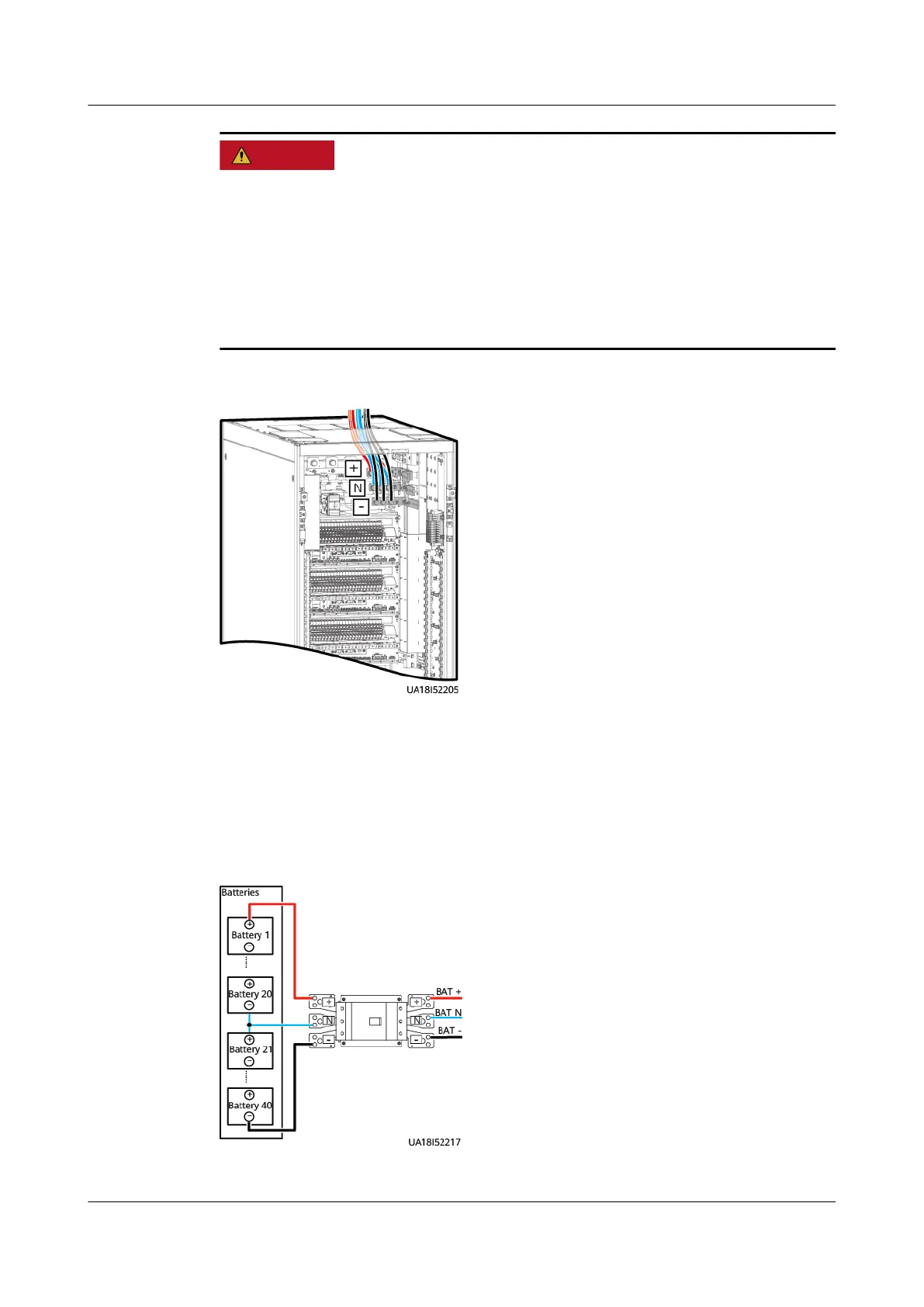 ● Ensure that cables are correctly connected between the battery strings and the