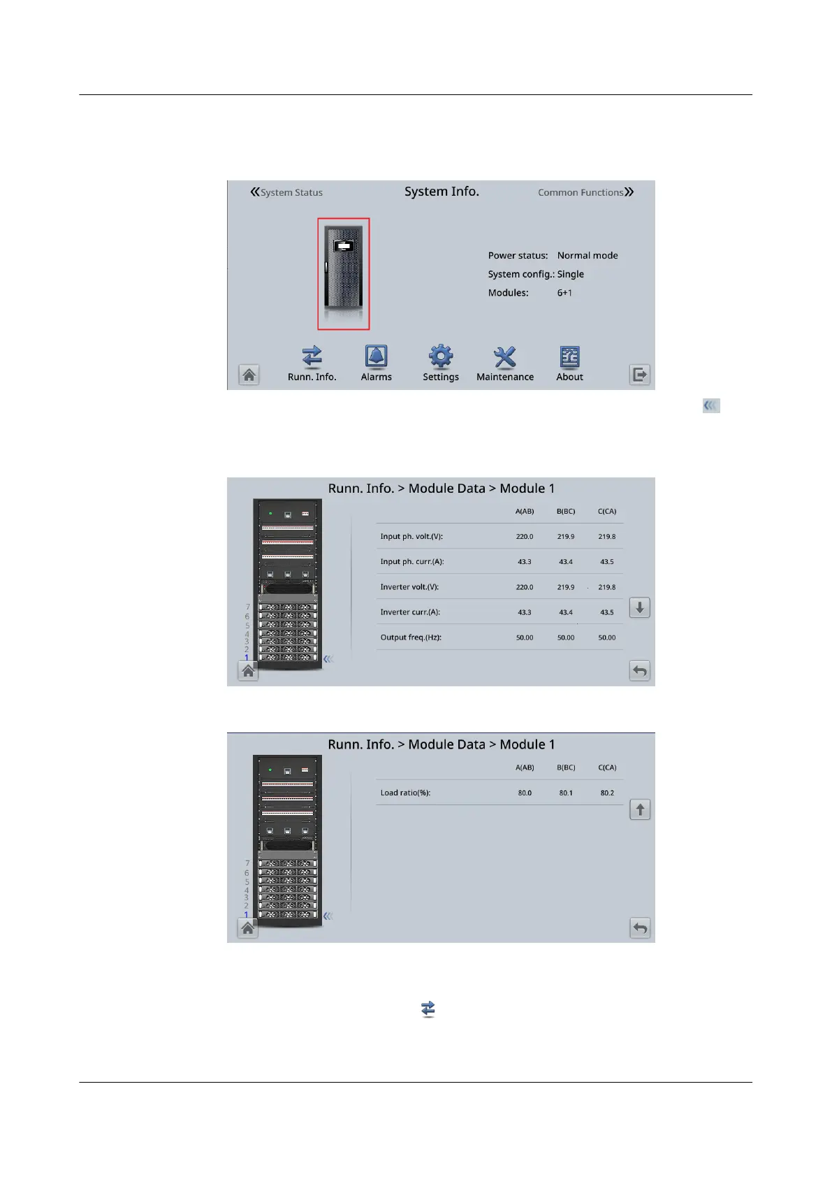 On the System Info. screen, tap to access the Runn. Info. screen. On this