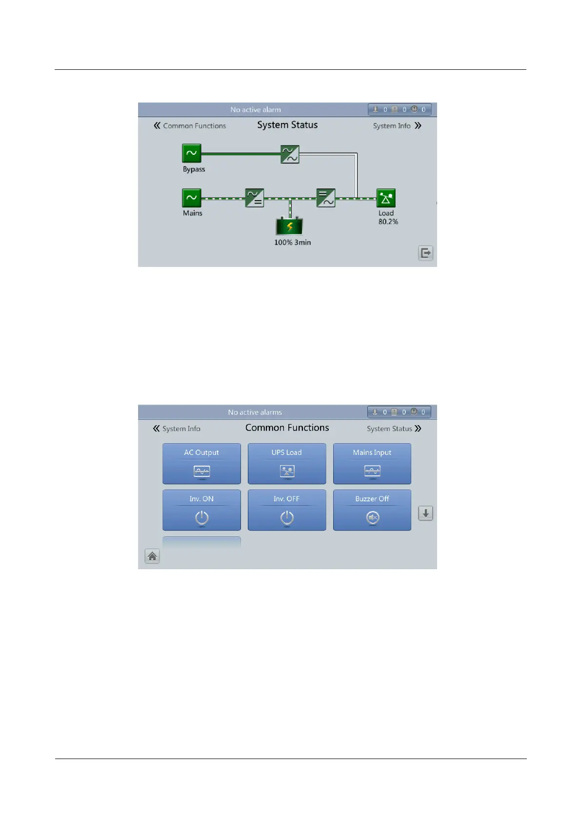 output, load, and mains input information, start or shut down the inverter, start or shut down