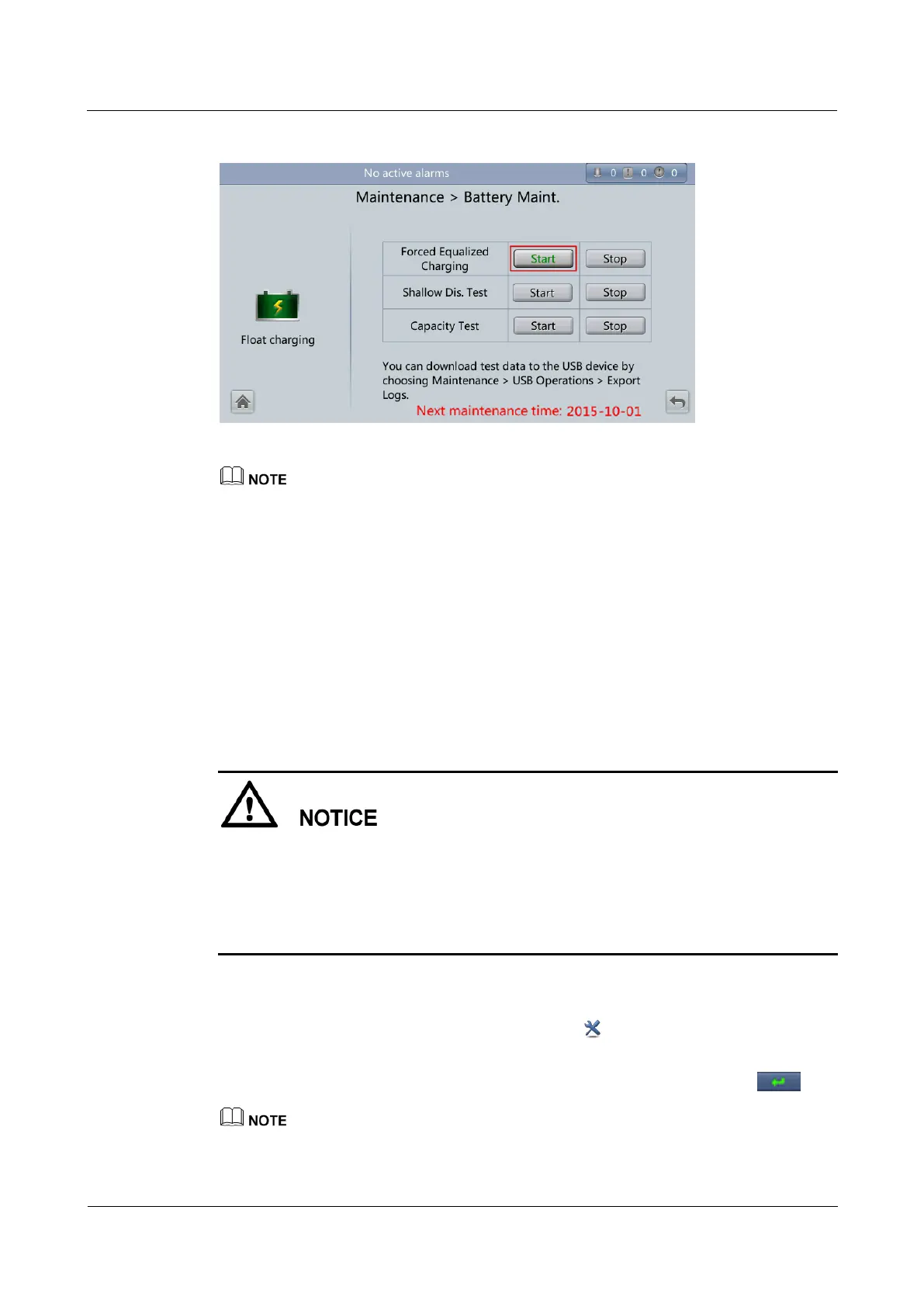 Tap Stop next to Forced Equalized Charging in any of the following cases: